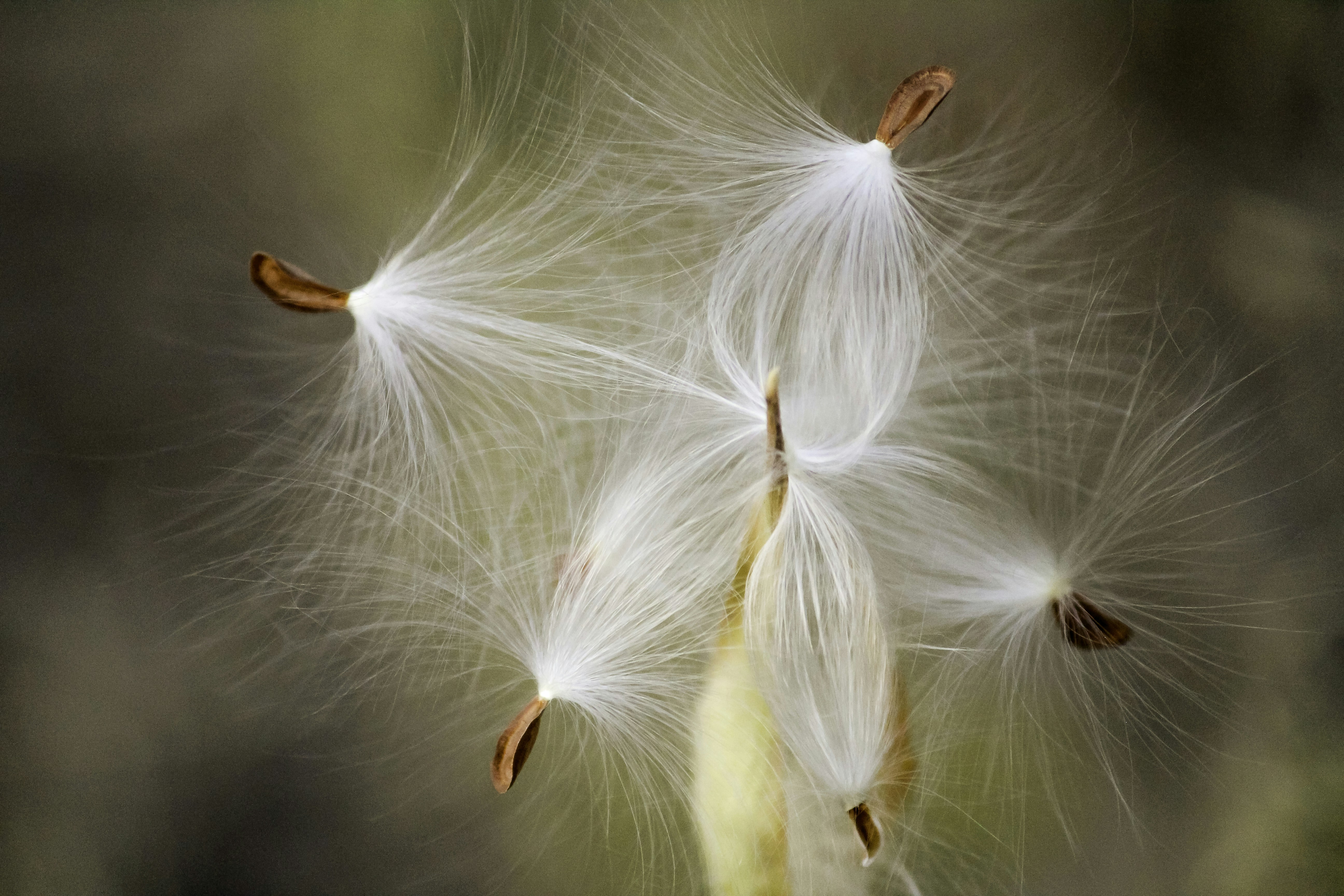 The white hairy seeds of the milkweed fruit - Asclepias syriaca - discovered in on a walk-about in Arizona.