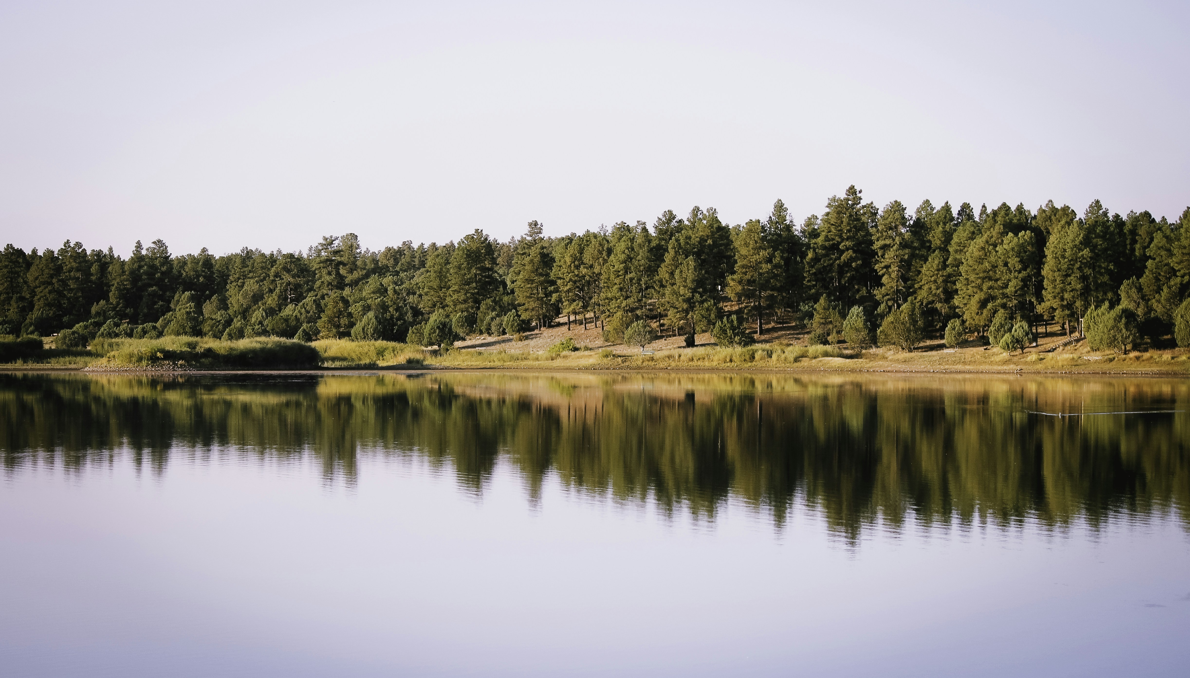 Reflection of pines on a Arizona lake in Showlow