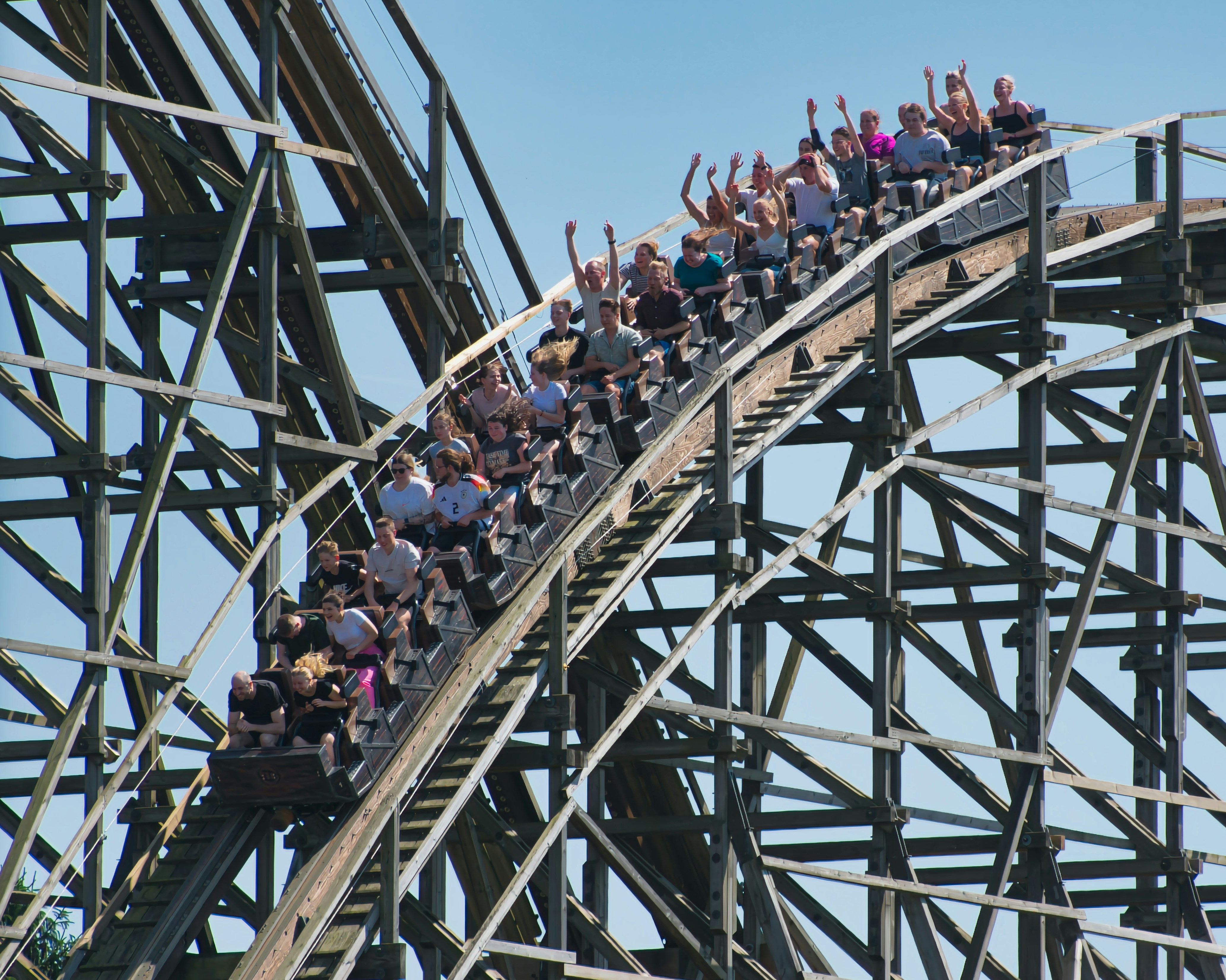 Colossos – battle of the giants at Heide Park. Once the tallest wooden coaster in the world, Colossos delivers massive drops, relentless airtime, and a roaring ride across its colossal structure. Reimagined with fiery theming, this Intamin wooden legend remains one of Europe’s most powerful coaster experiences. 🎢 Ride Facts: Type: Wooden Coaster (Intamin Plug & Play) Opened: 13 May 2001 (reopened 2019 with new theming) Height: 50 m Length: 1,344 m Top Speed: 110 km/h Inversions: 0 Duration: ~2:25 min Trains: 2 trains with 6 cars each (2 riders per row) Theme Area: Bucht der Totenkopfpiraten
