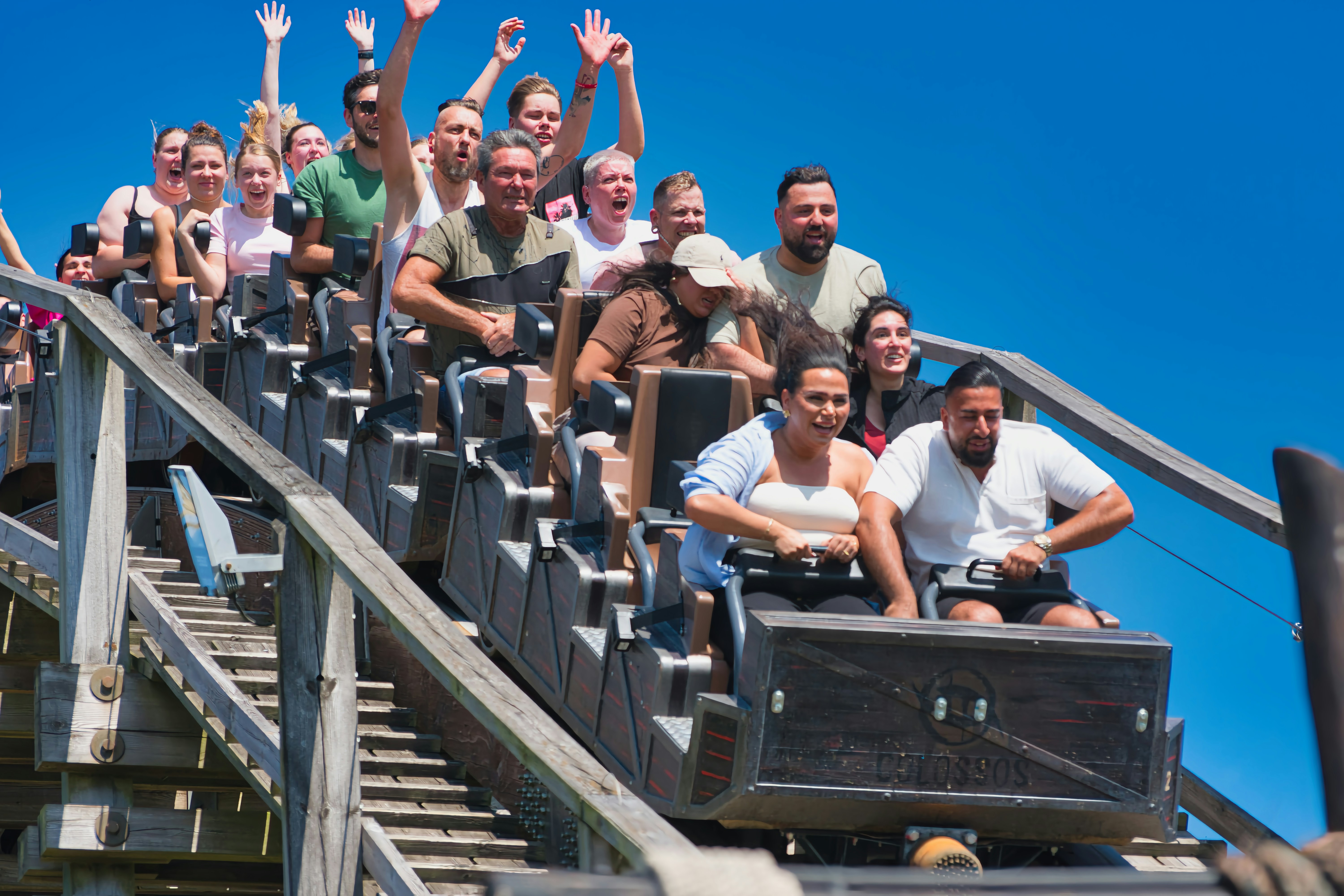 Colossos — titan of timber and fury. A 60 m wooden behemoth, racing at 110 km/h across a 1,344 m prefabricated track, delivering relentless airtime, 4.5 g forces, and roaring through camelbacks, helixes, and bunny hops. Reborn in 2019, this Intamin masterpiece still rules as Europe’s fastest wooden coaster. Type: Wooden Coaster (Intamin prefabricated track by Ingenieur-Holzbau Cordes) Opened: 2001 (rebuilt 2019) Height: ~53 m Length: 1,344 m Top Speed: 110 km/h Drop Angle: 61° Duration: ~2:25 min Trains: 2 (5 cars × 3 rows × 2 riders) G‑Force: −1.5 to 4.5 g Capacity: ~1,030 riders/hour
