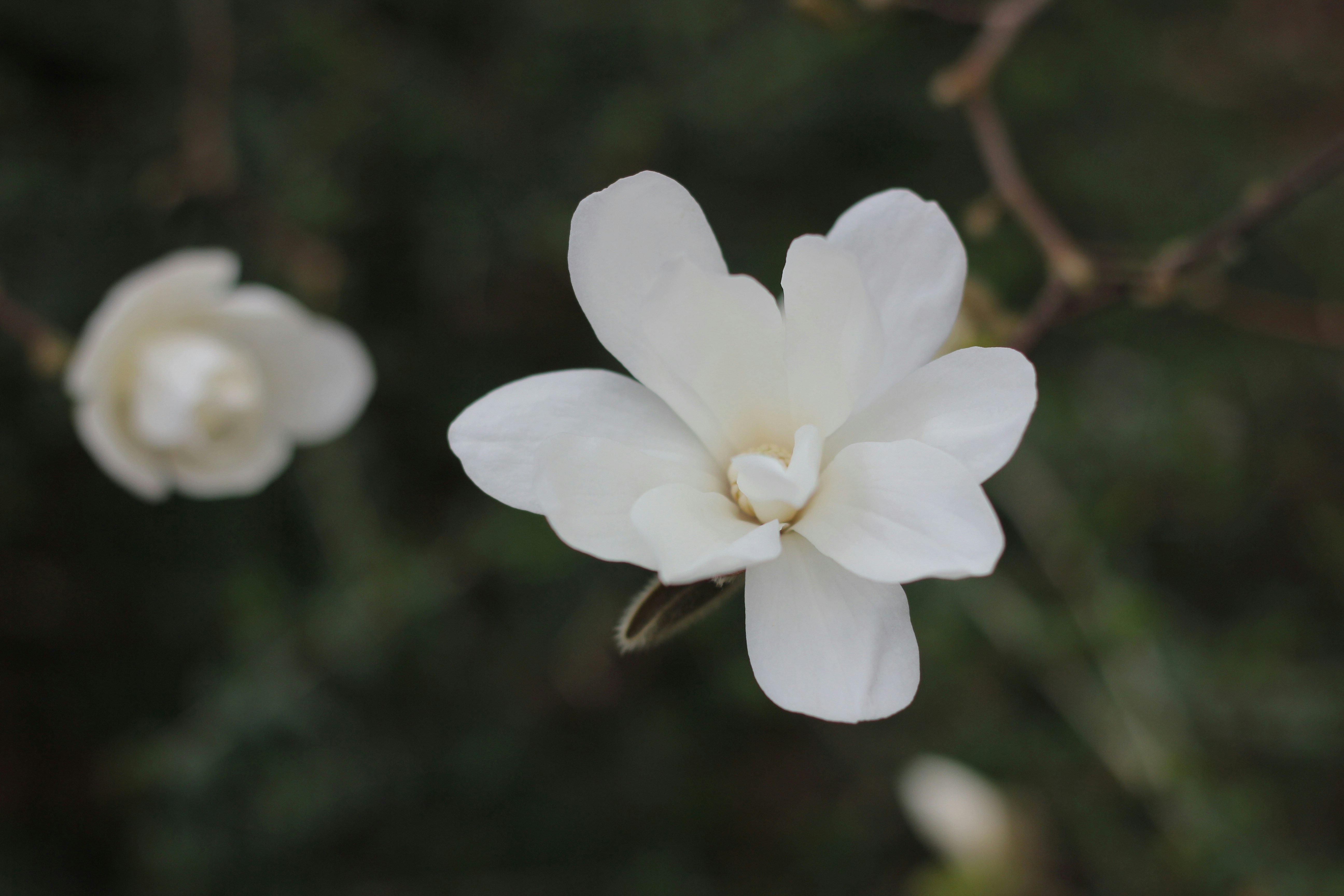 white flower in tilt shift lens
