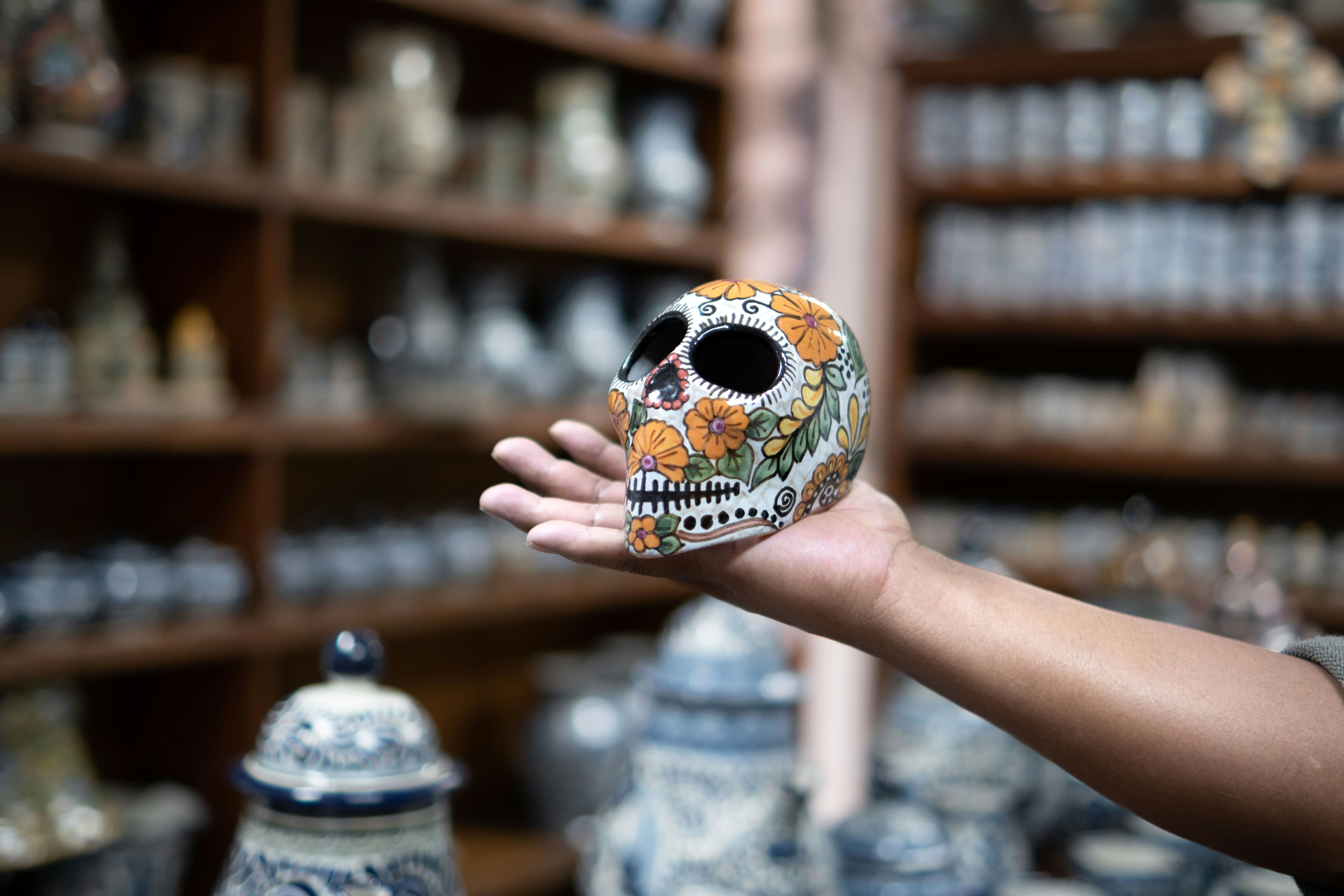 a hand holding a skull