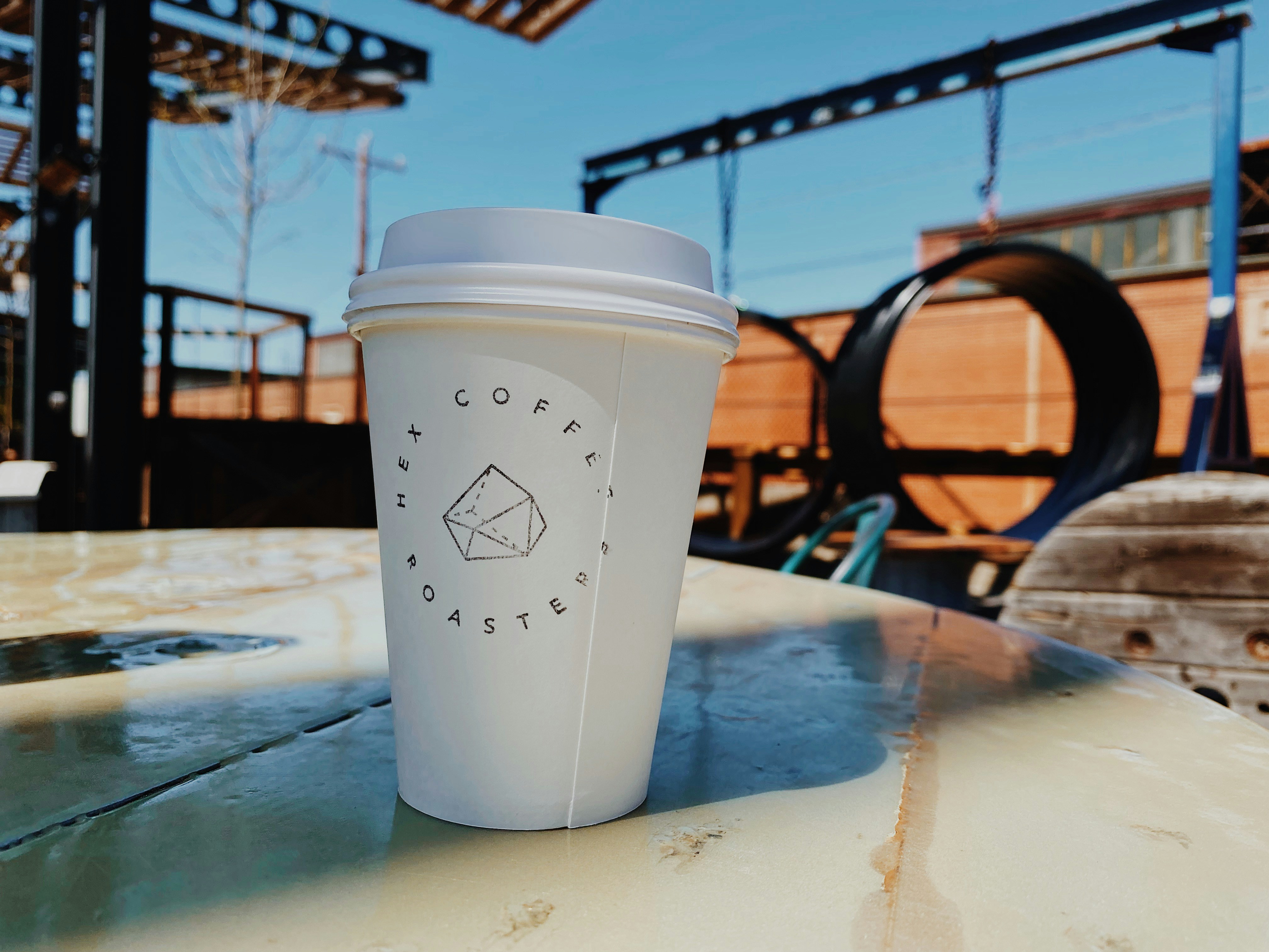 a cup of coffee sitting on top of a table
