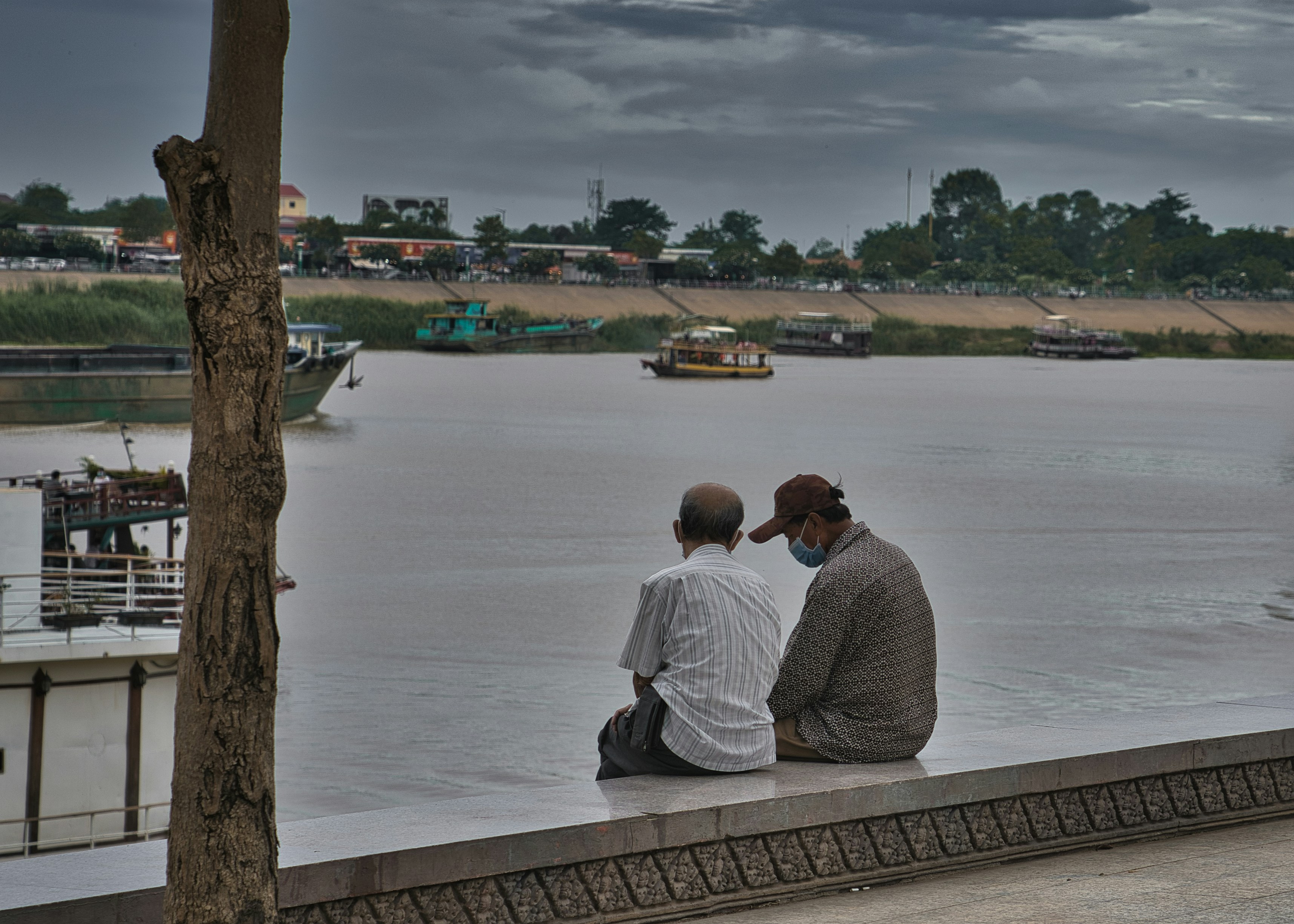 The little talks. Retired friends sitting by the river at Phnom Penh