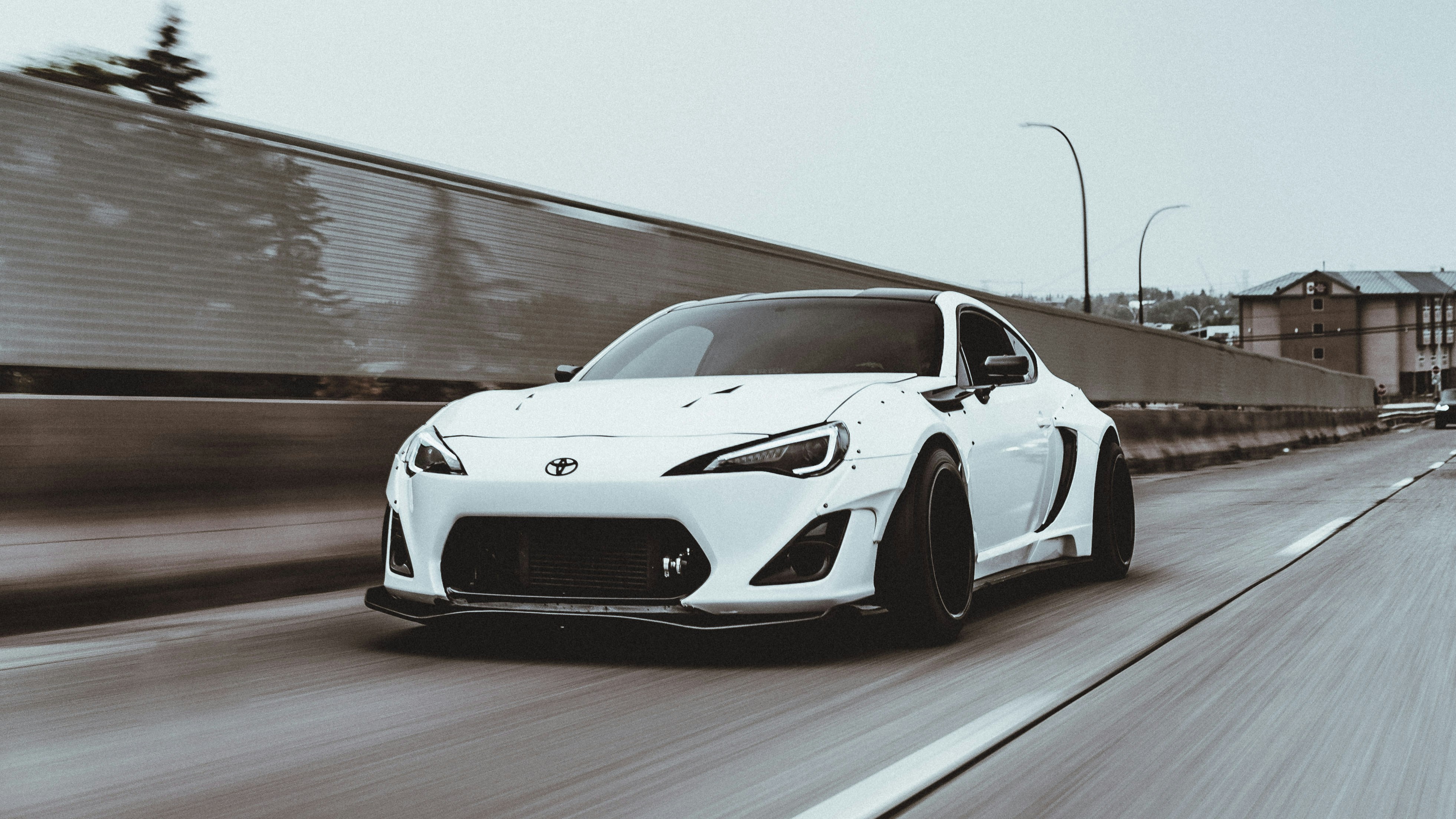 White toyota 86 wide body driving on a road in calgary Insta:@sichpicsss