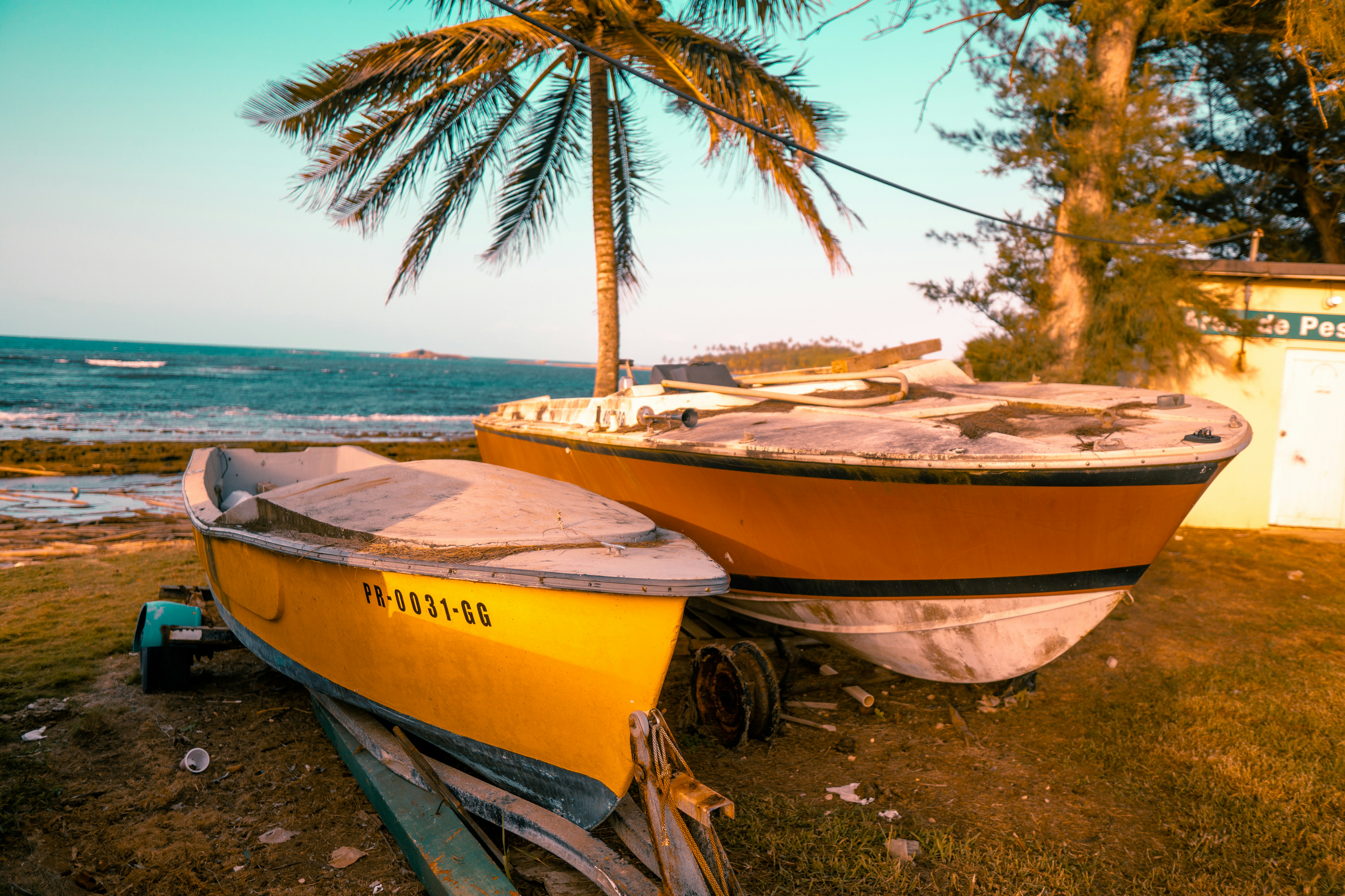 yellow and white boat on beach shore during daytime