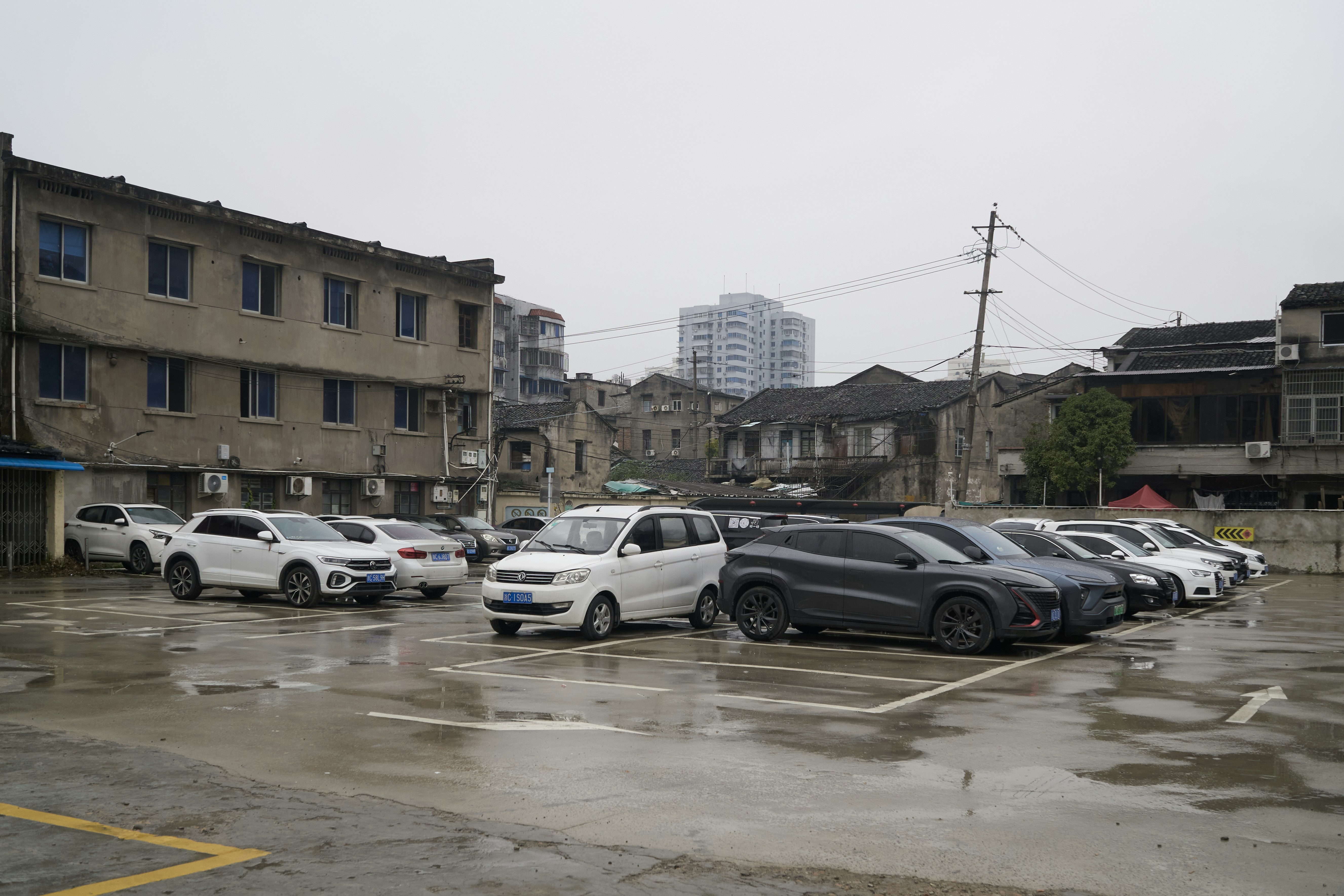 A parking lot filled with lots of parked cars