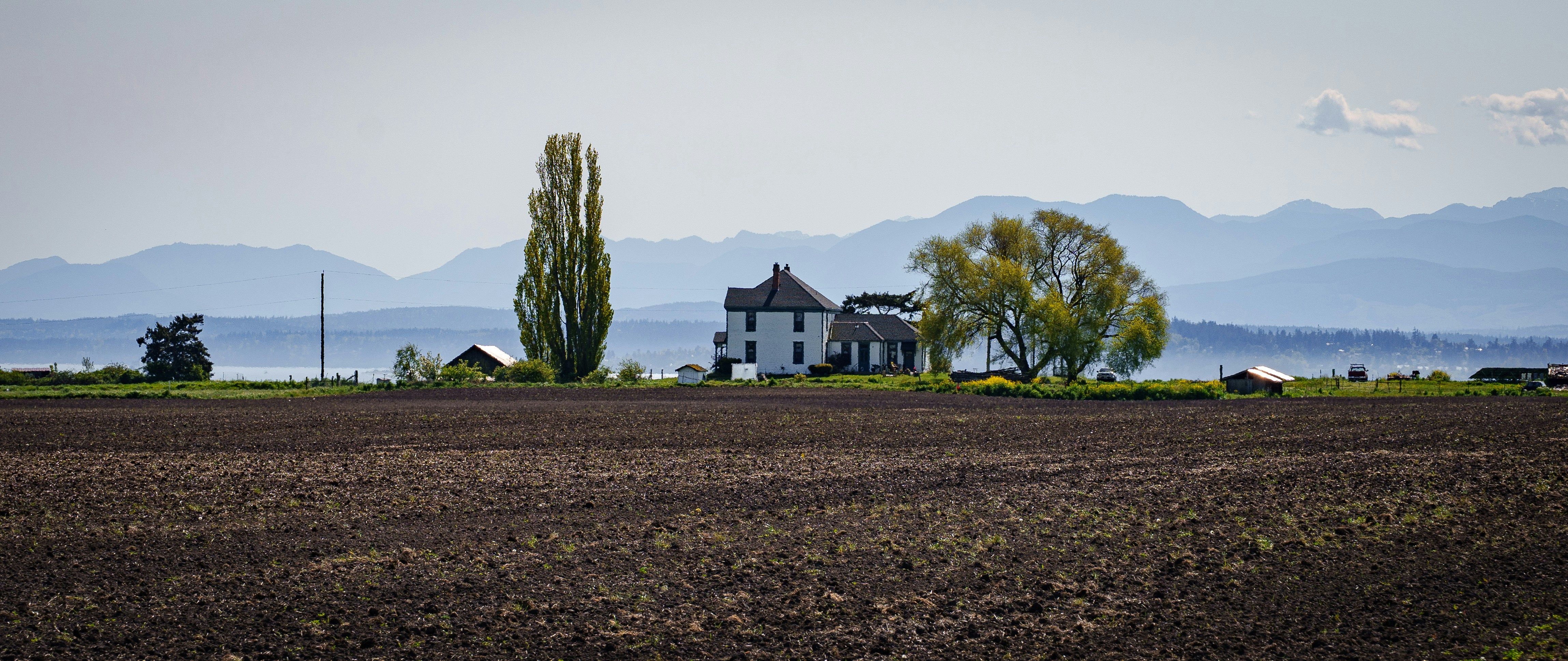Farmhouse and landscape in the countryside.