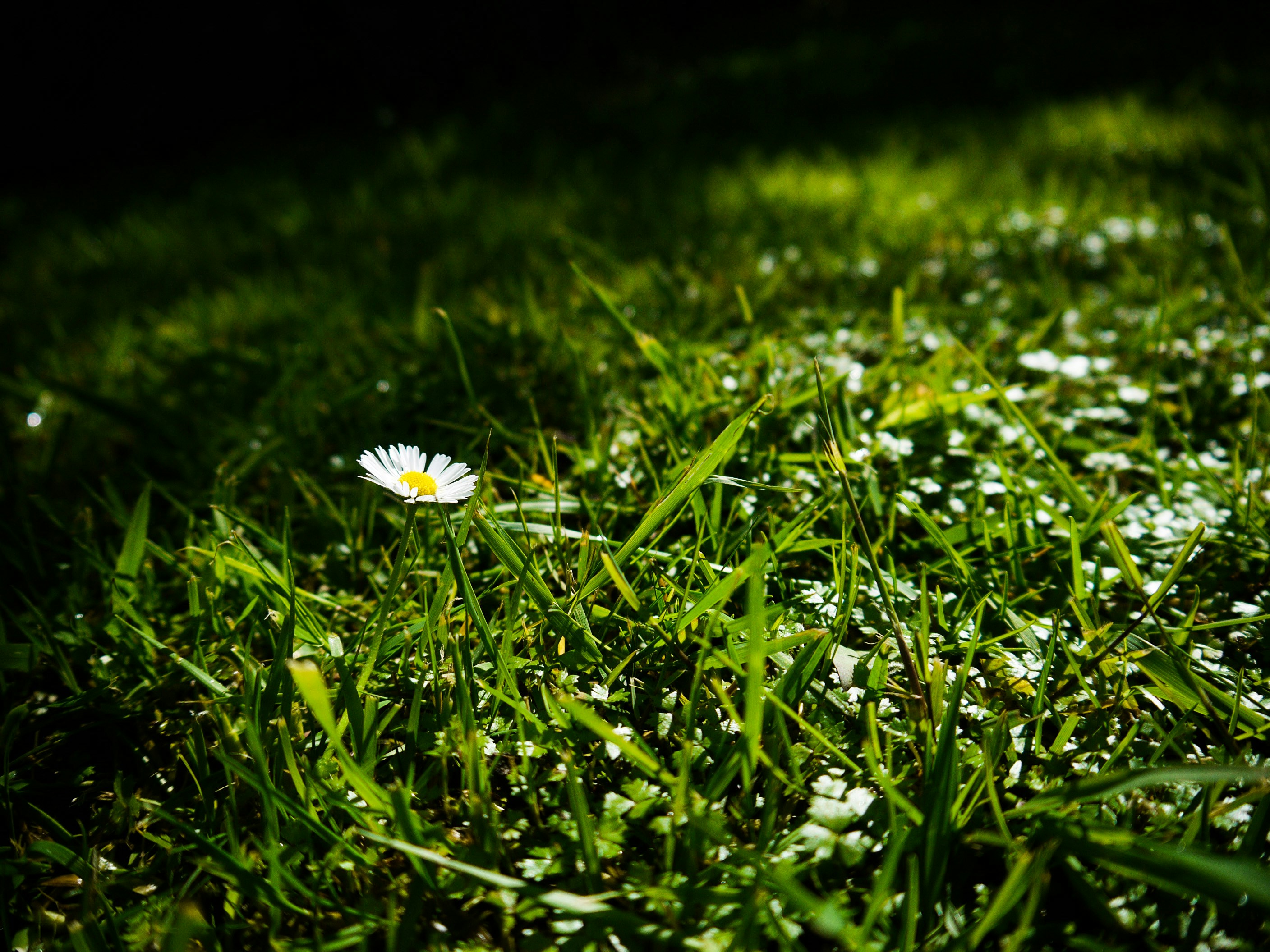 a white flower in a field of grass
