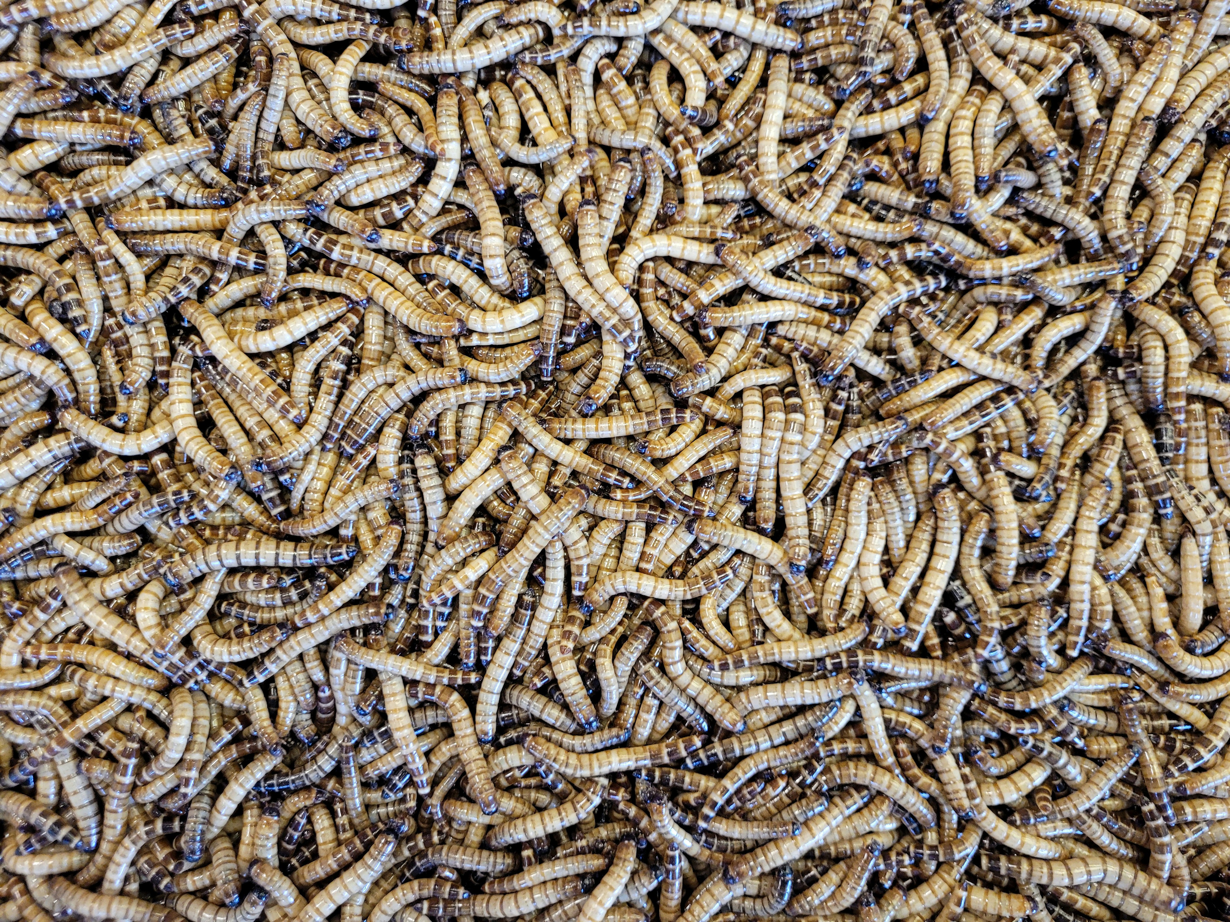 Top view of maggots in the Chatuchak animal market, Bangkok Thailand (closeup)