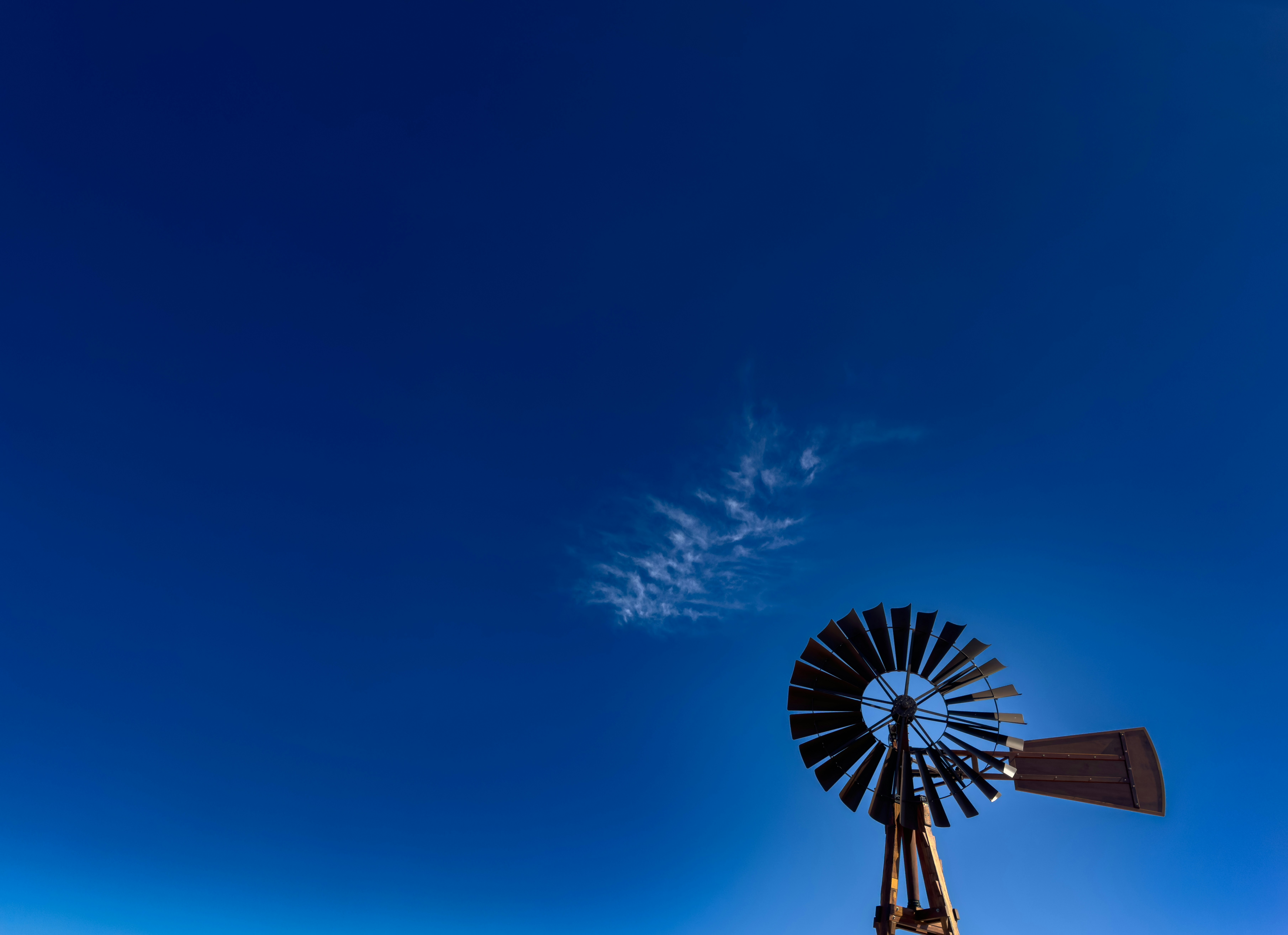 Dark blue sky with a windmill in the lower right of the image.