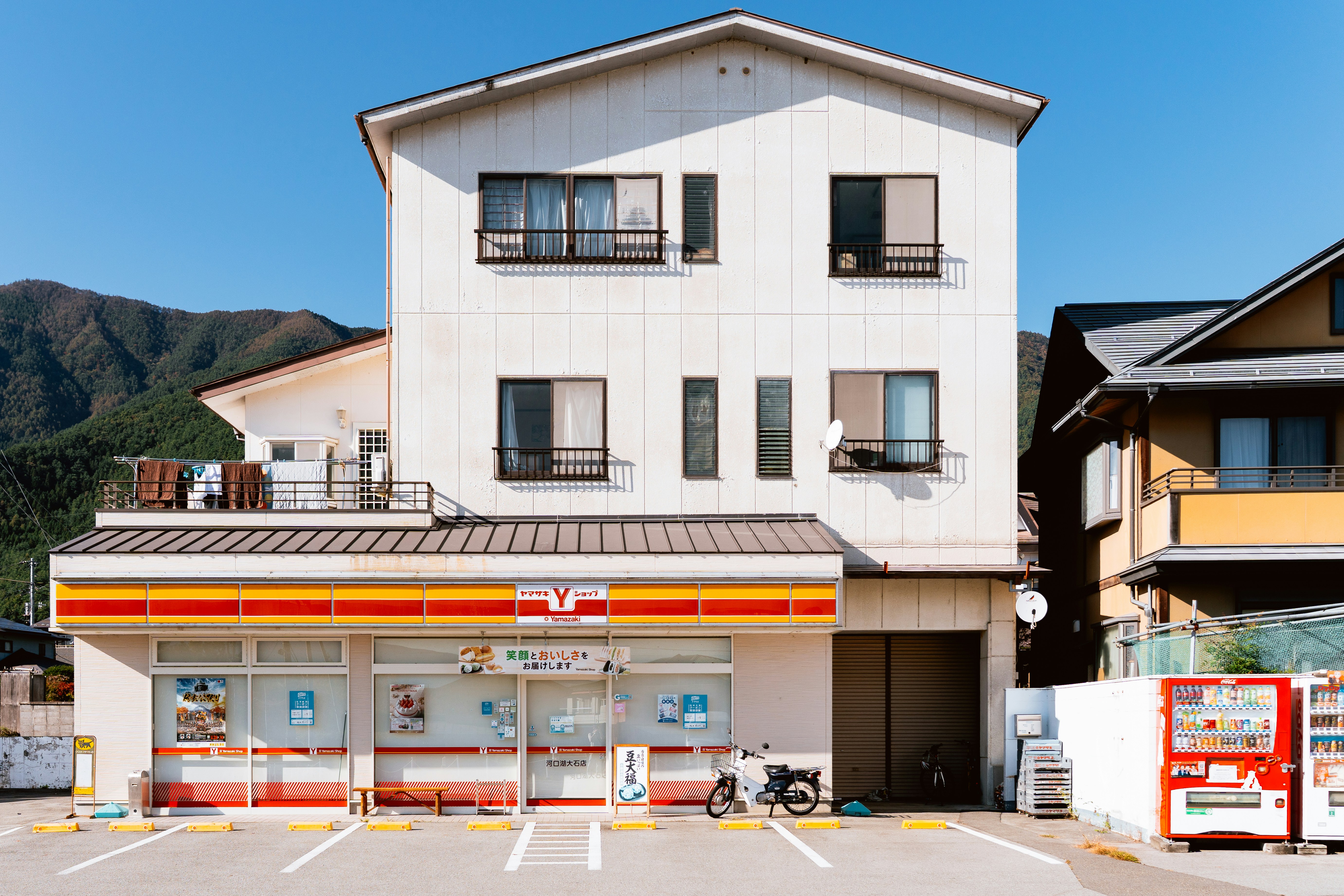 A japanese convenience store is beneath a home.