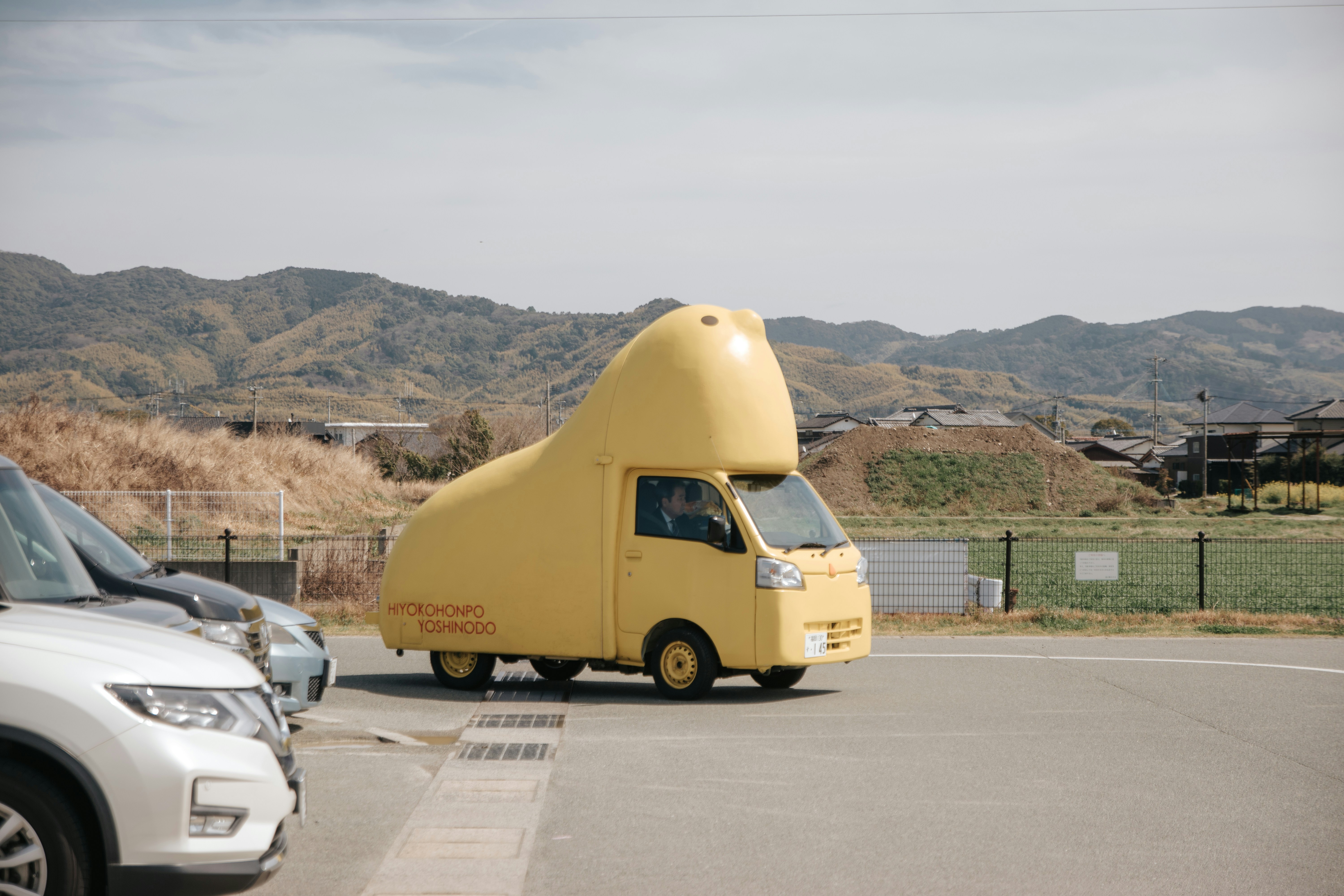 a large yellow truck parked in a parking lot
