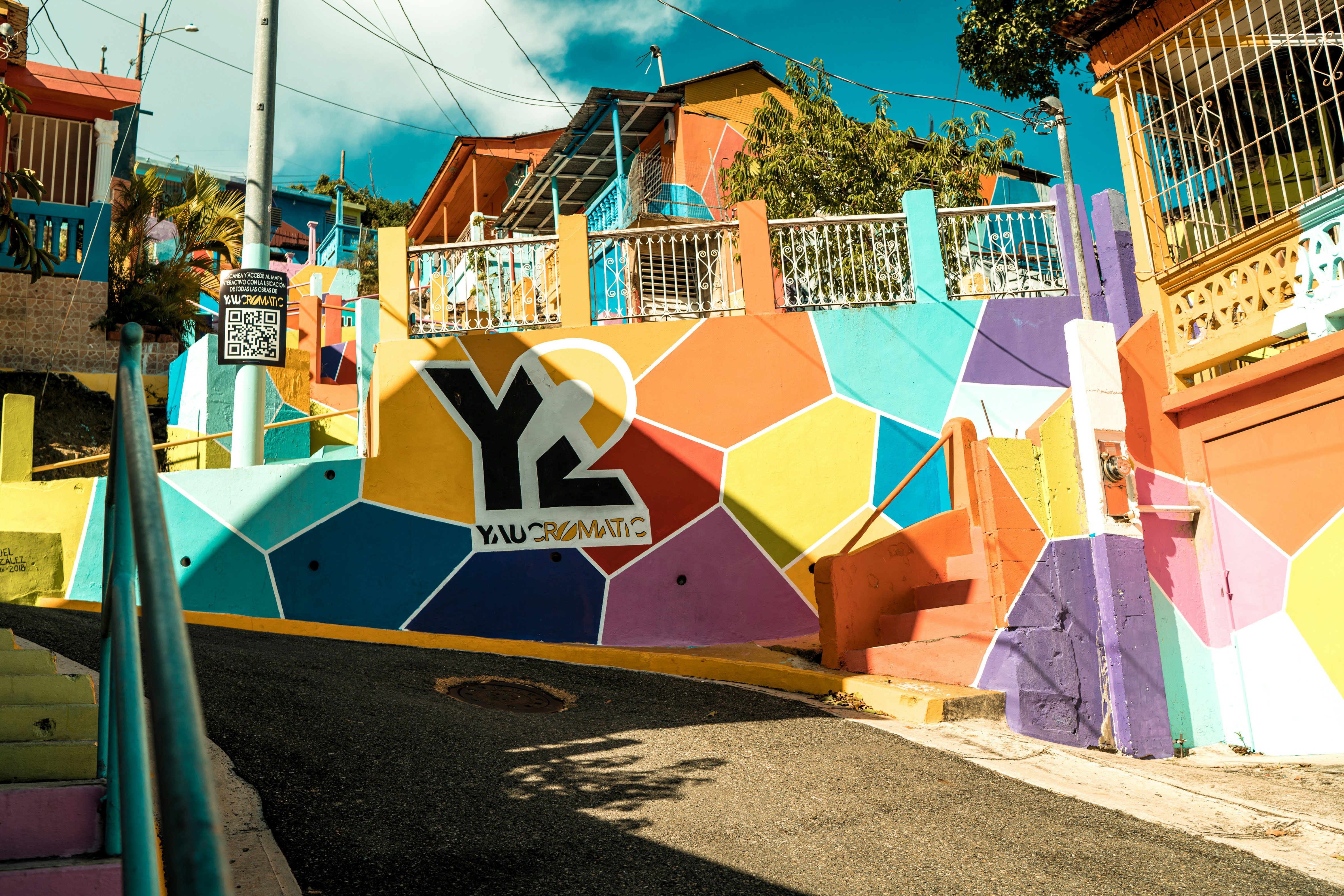 a colorful wall with the word yauco painted on it